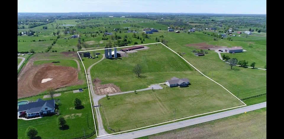 Welcome to your KENTUCKY Home Sweet Home! NEW front & back COVERED porches with recessed lighting & charred wood finish. This home features a large kitchen with LG black stainless steel appliances, a large island and plenty of cabinet space. The living room includes a vent-less fireplace & plenty of space for a large sectional. Step into the master bedroom & into the master bathroom with double vanity, a soaker tub, an over-sized tiled walk in shower with seat, & a walk in closet. Almost every bedroom in the house has a walk in closet! Features extra space (key-code lock) perfect for a gun room. Property features a 4,550 sqft Barn, a HUGE 8,000 sqft building with a 1,000 sqft garage/workshop inside that building, barn & building both have dedicated 200 AMP electrical services. Barn features Custom 20' x 8' chicken coop with auto watering system. check out the 3 60' silo's! This property is absolutely GORGEOUS & FULL of possibilities. Call for a private showing of this beautiful home!