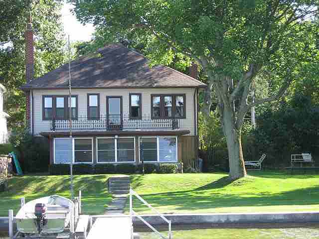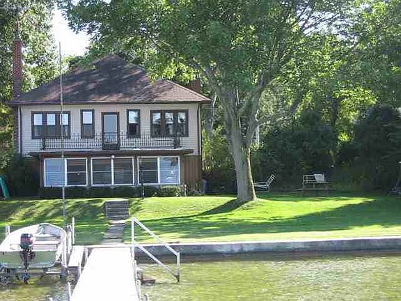 Splendid find! Enjoy the charm of yesteryear in this Clear Lake cottage. It has the old fashioned beedboard walls & ceilings + knotty pine in the lower level. There is a fieldstone stone wood burning fireplace. The lakeside enclosed porch has stone walls on the bottom & plenty of windows to enjoy the sparkling lake views. 80 ft of lkfrt w/ a spacious yard, sand beach & seawall. Most furnishings incl. Back lot w/det.garage. Acreage is .40 w/back lot. See tax note in addendum.