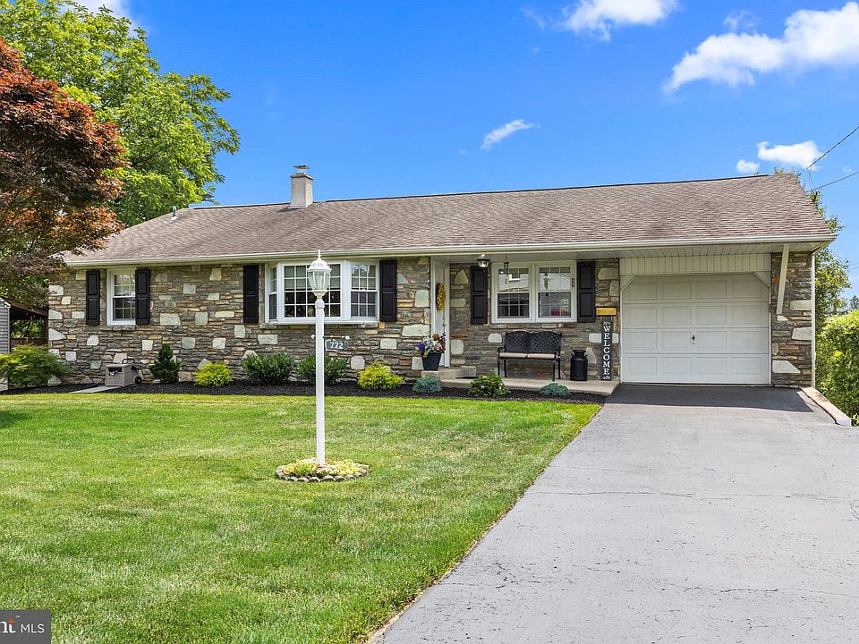This tastefully updated ranch style home offers a stunning setting and impressive curb appeal. The exterior is beautifully adorned with well-maintained flower beds and extensive landscaping. The home features a full walkout daylight basement. Step onto the covered front porch and enter the spacious main level, bathed in natural light from the abundance of windows. Hardwood floors flow through most of the first-floor rooms, creating a seamless and elegant look. The living room is a highlight of the home, boasting a beautiful bay window, crown moldings, and recessed lighting. It seamlessly opens to the formal dining room, providing an ideal space for both family gatherings and everyday meals. The updated kitchen is a chef's delight, with tiled floors, tasteful cabinetry, stainless steel appliances, generous pantry, and ample countertop space topped with a stylish backsplash. Down the hall, you'll discover the primary bedroom, which offers a ceiling fan for added comfort, a walk-in closet, and a full bath. The bathroom, features tiled flooring, a stall shower with a glass door, a pedestal sink, and tasteful fixtures. Two additional bedrooms, each with generous closet space and one with a ceiling fan, provide added comfort. The full hall bath has been updated and showcases tiled floors and a soaking tub surround. Completing the main level is access to the laundry room, conveniently located with garage access and attic access for additional storage. Descending to the lower level, you'll find a spacious finished family room that can accommodate large furnishings along with a stone gas fireplace for those cozy winter nights. This versatile space also includes a game room area with a pool table and a bar, perfect for entertaining. A separate guest room or home office, complete with closet storage, offers additional functionality. A convenient half bath is located on this level, along with extra storage space. An access door on the lower level leads to the relaxing backyard oasis, complete with a bluestone patio. The outdoor space is complemented by tasteful landscaping and manicured flower beds, creating a tranquil atmosphere for outdoor enjoyment. Close to all amenities, shopping, highways and entertainment. Please schedule your showing today!