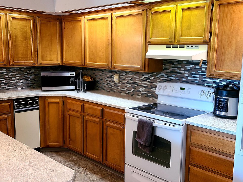 - Appliances: Dishwasher, Elec Range/Oven, Refrigerator, Dryer, Microwave, Washer, Range Hood, Garbage Disposal, Water Filter, Water Softener