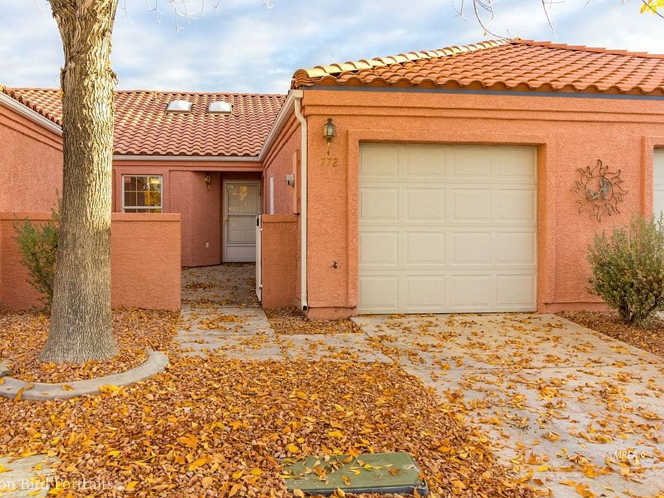 Enjoy quiet and peaceful living in the Crossings Subdivision with wonderful amenities. The Crossings offers a swimming pool, clubhouse with workout machines, pool table and small gathering area for visiting and entertaining. This home is directly across from the pool and clubhouse, the living area is bright and airy with skylights and vaulted ceilings. The kitchen is centrally located in home and shares a nice open floor plan with the dining and living room. The master bedroom is en suite with closet and bathroom. The guest bedroom is at opposite end of town home. This unit has the desirable front courtyard and an attached 1 car garage. Great location, close to casinos, restaurants and shopping.