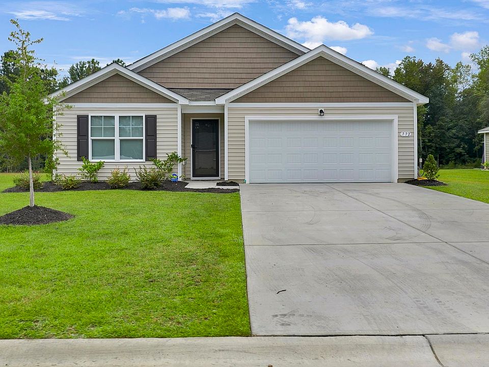Welcome to 772 Planters Moon Drive, a beautiful four-bedroom, two-bath Cali floor plan offering the perfect blend of comfort, privacy, and convenience. Nestled on a peaceful pond lot with serene wooded views, this home provides a rare setting where you can enjoy both water and nature right in your backyard. Inside, the open-concept design creates a bright and inviting flow. The kitchen boasts modern cabinetry, stainless steel appliances, a large center island, and plenty of counter space, opening seamlessly to the dining area and spacious living room. Whether you’re hosting friends or enjoying quiet evenings, this home is built for both relaxation and entertaining. The owner’s suite is privately tucked away at the rear of the home, complete with a walk-in closet and spa-inspired en-suite bath featuring double vanities and a walk-in shower. Three additional bedrooms provide flexibility for family, guests, or a home office. Step outside to your covered screened patio—an ideal spot for morning coffee or evening sunsets overlooking the pond and woods. Residents of this desirable community enjoy fantastic amenities, including a clubhouse with fitness area, outdoor gathering space, and sparkling pool. The HOA covers trash pickup and recreational facilities, adding to the carefree lifestyle. This location truly shines—just a quick golf cart ride to downtown Aynor, local shopping, and dining. Families will appreciate being part of the award-winning Aynor School District. Here, you’ll find the best of both worlds: a highly desirable neighborhood where country living meets city conveniences. Don’t miss the opportunity to make 772 Planters Moon Drive your new home and start enjoying this unique blend of comfort, community, and location.