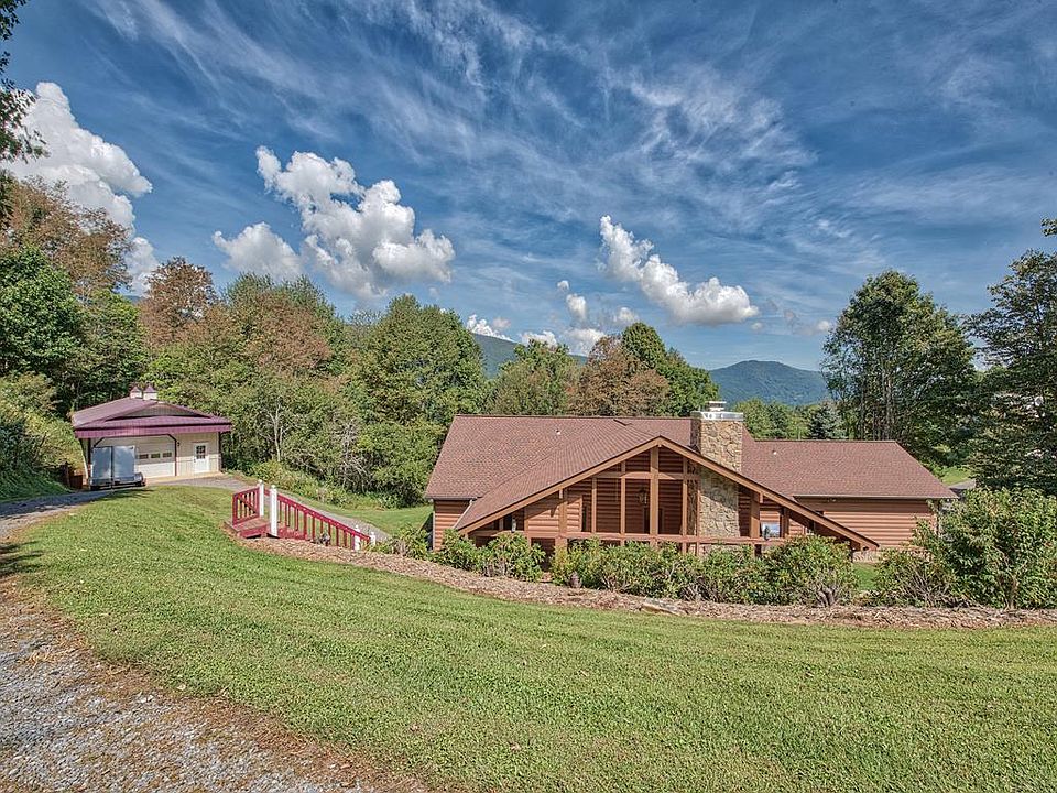 An abundance of benefits to be found with this unique property. Not one but two 1600+/- square feet OUTBUILDINGS. Building one offers power, water, heated and cooled along with office space and plumbed for bathroom. Building two is insulated with power. The grounds of this unique property have a RV pad with water and power (30 & 50 AMP), CREEK with observation deck, picnic shed, and mountain views. Entertain your guest on the back patio by the outside fireplace during almost any season. Home offers custom kitchen, gas log fireplace in master bedroom and great room, study/exercise room, and covered front porch.