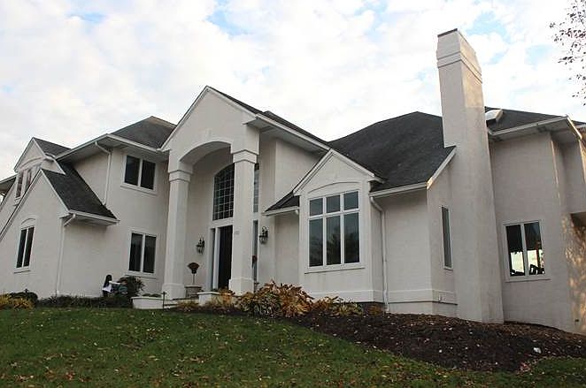 Beautiful, expansive, bright, private all describe this spacious home. Enter the two-story foyer with Palladian window, limestone floor and dramatic chandelier through the solid wood 8 foot double doors. Living room has vaulted ceiling, dramatic fireplace, hardwood floors and numerous windows. Dining room overlooks rear yard with six windows, hardwood floors. Kitchen/family room is truly expansive with plenty of cabinets, island with gas cook top, two ovens, walk-in pantry, hardwood floors and 6 x5 window over sink. Family room is two-story with full wall floor to ceiling windows, custom built-ins, a second fireplace and hardwood floors. Private office has two walls of custom, built-ins and four windows. Master bedroom has tray ceiling, bay window with 5 windows, two walk-in closets and large master bath with steam shower and oversized jetted tub. Another bedroom has en suite bath and walk-in closet. Two more bedrooms have Jack N Jill bath. Basement is finished (55 x31 ).
