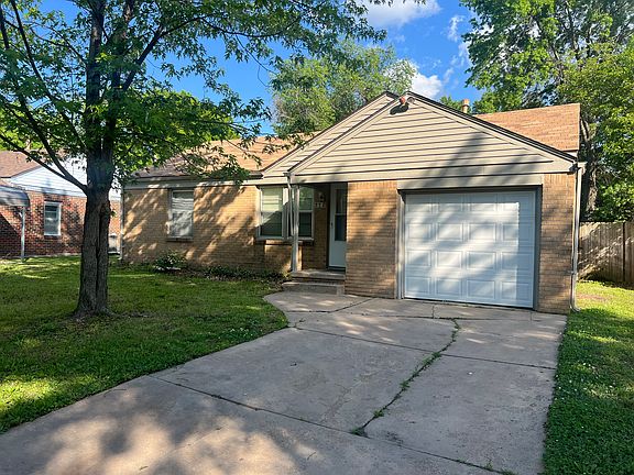 Great brick house just south of Woodlawn and Kellogg. Cute built-in cabinet and drawers in hallway. Carpet throughout except kitchen and bathroom. Kitchen appliances include range/oven and fridge. Large laundry room. 1 car garage with opener. Fenced yard. Shed in back yard. Newer HVAC!. One year lease minimum. No Section 8. *Landlord is a licensed real estate agent Tenant pays all utilities and maintains lawn. $200 non-refundable pet deposit if approved.