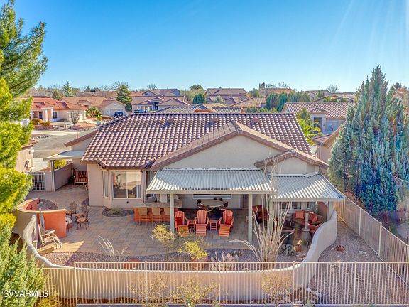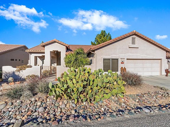 Gorgeous Home located in Verde Santa Fe, backing to the Agave Highlands Golf Course with Amazing Views! Private, gated courtyard with fountain & slate tile porch, the perfect spot to enjoy the morning sun. Inside you'll find warm designer interior paint colors that separates this home from the others. Kitchen features granite counter tops, custom backsplash & breakfast bar. Great room with stunning floor to ceiling custom red stone gas fireplace. Master suite with bay window, heated tile flooring, custom tiled shower & walk in closet. Split floor plan with 2 addition bedrooms & bonus room for den/study/studio. Wonderful back patio with multiple covered & open air sitting/lounge areas with gas fire pit, built in bbq/bar & custom surround wall. Furniture & some decor available for purchase.