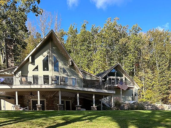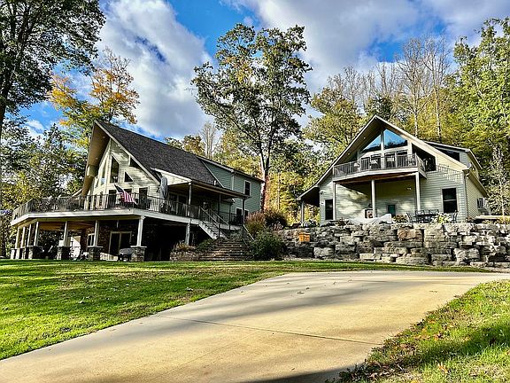 Spectacular views and custom 5-bedroom, 4 full and 2 half bath, home sitting on the Allegheny River. Located in a private community and along the Armstrong Rails to Trails, this 135'+ river front property with private concrete boat launch and docking systems is a must see! Located in Pool #9 on the Allegheny River with deep water boating, you can start your mornings watching the sun come up with coffee on one (of the two) large synthetic decks overlooking the river and the beautiful Allegheny National Forest. Spend your days watching bald eagles soar, biking, running or walking the trail, water skiing, wake surfing or cruising in your pontoon and watching sunset on the water. Later, enjoy the quiet of a nighttime campfire with a glass of wine. This custom home was built in 2013 and has a recently remodeled kitchen with plenty of storage, stainless farmhouse sink, quartz countertops, new stainless-steel appliances and hardwood flooring. A custom stone Regency high efficiency wood burning fireplace, vaulted cathedral ceiling and large windows gives you an unobstructed view of the river and plenty of natural light. The first floor also consists of the master bedroom, master bathroom, a half bath and laundry room. The second-floor airy loft leads to two additional bedrooms and a full bathroom. The finished basement has fully formed concrete walls (not block) poured on a concrete footer and has plenty of room for a pool table, a full bathroom, an additional bedroom and plenty of storge for your river toys and lifejackets. The basement leads out to exposed aggregate concrete, covered underdeck, a great place to put your hammock and read a book. Around the corner is the outdoor shower and kayak/paddleboard storage. Steps away is the private woodburning firepit. Built in 2024, the oversized garage with second floor mother-in-law suite boasts incredible views, a custom bar, separate office, living room with floor to ceiling triple pane insulated Pella windows (including 4 stunning customized trapezoid windows,10'x7'x13'), full bath with luxurious stone and tile shower and a natural gas fireplace. Two Mini Split Heat & Air Units (one on each floor). Red oak and tulip popular trees harvested off the property complete the custom walls, ceilings, doors and trim work on both floors. Lower level of the garage has radiant heated floors and ample space for storage. Three oversized garage doors (two 10'x16' and one 12'x12') enable you to pull your boat or jet ski through and plenty of room for your cars. Half bath on the lower level of the garage and a workbench area. Both floors are fully sealed tight in closed cell spray foam insulation. Block walls are concrete filled with steel rebar. Hardy plank siding on both the house and garage, security system and security cameras, landscape lighting, two large decks constructed with Endeck PVC Decking with stairs leading to the lower level, well established perennial garden consisting of butterfly bushes, hydrangea, coneflower daisies and lavender attracting countless butterflies and hummingbirds for your enjoyment. A fully landscaped yard minimizes grass cutting and finished with a beautifully cultured stone wall surrounding the newest structure.