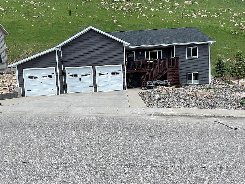 A very nice and well-taken care Immaculate home. Beautiful Mountain views from the Front Covered Deck into the Living Room, Open Kitchen & Dining Room that accesses the back Covered Deck through Sliding Glass doors. Master bed with a walk-in Closet & private bathroom & a second bedroom & bathroom including a laundry room rounding out the Main Level. Completely finished basement includes a large family room that could be partitioned to add 2 additional bedrooms for larger families. Also includes an Office/Exercise room and a large bedroom with a private bath as well as a storage room or convert into a laundry room that includes washer and dryer hookups. Top of the Line Window Coverings. The back Covered Deck off the Dining Room has a large patio that includes a Weber Grill with the Natural Gas line piped from the home, no tanks required. Patio Table, Umbrella and 4 Wicker Chairs are included with the Sale The two stall garage that also includes a third Storage/Garage stall for your toys. Fully Rock Landscaped with trees. Sprinkler Stubbed-out for Grass Landscaping. Beautiful Mountain views from the Front Covered Deck with the City of Deadwood Sewer, Water and Garbage Utilities as well as a new Park with a Playground and Dog run. A must-see-Home. Contact your favorite Realtor or Listing Agent Kevin Schilling, Black Hills Broker, 605-641-5848.