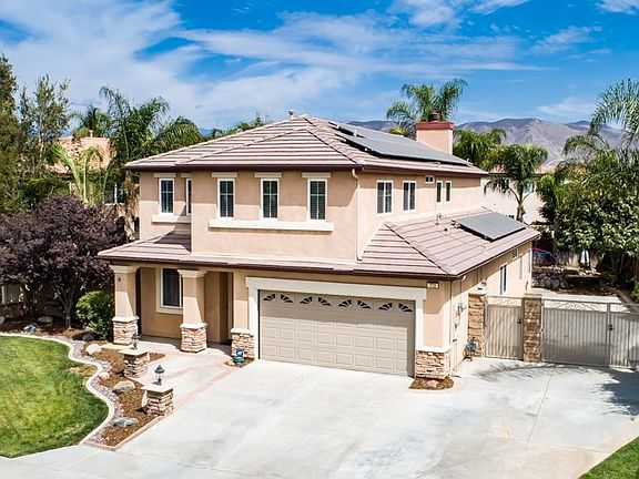Rare Find! "Highly Upgraded" Model Perfect West San Jacinto Home with SOLAR, NO HOA & RV Parking!! This Large 2723 sq. ft. home has over $40k in upgrades with 4 Large Bedrooms & 3 Full Bathrooms (One Bedroom & Full Bathroom Downstairs), Formal Living & Dining Room, Huge "Eat in" Kitchen w/Granite, Maple Cabinets, Large Center Island and Stainless Steel Appliances. The Spacious Family Room is open to the Kitchen with Tile Fireplace and Office Nook. Other Upgrades include New Interior Paint, New Shutters & Blinds, Brushed & Chiseled Travertine Floors w/Granite Inlay, New Laminate Wood Flooring, New Ceiling Fans, Mirrored Closet Doors, Full LED light change throughout , Outlet Gaskets on all electrical receptacles. Upstairs there is a Large Loft, Spacious Master Bedroom (with Retreat), Two large closets with Custom Installed Organizers , Upgraded Bathroom with Travertine Floors w/ Granite Inlays, Double Sinks, Separate Soaking Tub ,Walk in Shower & Stained Glass Windows. Guest Bedrooms have Laminate Wood Flooring and are quite spacious! The Garage has Epoxy Flooring and Storage Racks. The Professionally Landscaped Yard has Flag Stone Steps w/ Lighted Pillars , Fully Hardscape Back Yard with RV Pad, Large Shade Cover, Rain Gutters, Children's Play Structures. Fruit Trees (Fig, Apple, Peach, Grapefruit) and Grapes. This Home is Perfect for Entertaining!! Located near Schools, Parks, Shopping and the Ramona Expressway / Warren Road for Easy Commute! This home has it all!