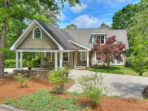 This custom built, one-of-a-kind property is located on almost 6.5 acres with a pond in North Augusta! This charming cottage is nestled in the woods offering privacy yet no more than 20 mins to the medical district, downtown North Augusta, & Augusta Target Center! This custom home features beautiful hardwoods, pine doors, custom staircase design, in-law suite in the basement (rough plumbed for a 2nd kitchen), and all bedrooms have en-suites! The chef's kitchen features inset cabinetry, island with bar stool seating, Sub-Zero fridge, 48'' Wolf Gas Range with 2 ovens, Thermador vent with heat lamps, granite counters, walk-in pantry with freezer space & laundry area, and gorgeous views of the property! The large open family room is the heart of the open with a stacked stone gas log fireplace! Enjoy the views all year round on the covered, screened porch that connects to an uncovered deck! The owner's suite on the main level features 2 closets, walk-in tile shower, and freestanding, soaking tub! The upper-level features 2 loft areas – great playroom/office space, and 3 ensuites. The basement features a gas log fireplace in the rec area that's rough plumbed for a 2nd kitchen, making this a fabulous in-law suite...5th bedroom with walk-in closet and full bath (walk-in shower) + a 2nd laundry space! French doors from the basement lead out onto a covered patio (new concrete coating) with access to storage under the crawl space (outdoor shower to rinse off after working in the yard) and the grass leads down to the pond with dock – take the kids fishing in the stocked pond! The 3-car garage with custom stained doors enter in the basement area. Ample parking throughout the property for extra vehicles! HVACs replaced in 2017, 2019, and 2020. New Tankless hot water heater 2023 with 500' of a new water line to the street! Property has a natural gas line, new survey completed, and partial Agricultural Farm!