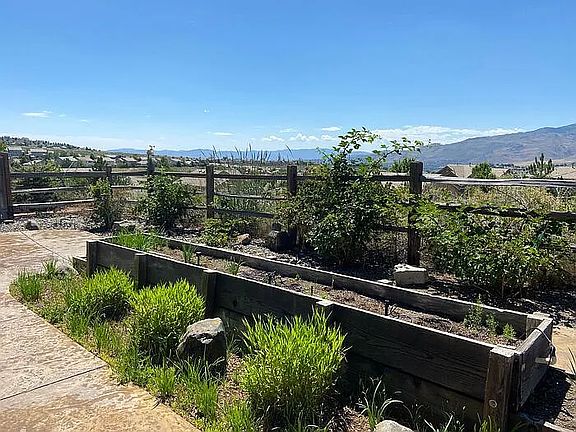 NW Reno House Edge of Somersett - Gorgeous Mountain Views - Cul-de-sac - Apply at Fabulous 3 Bedroom, 2.5 Bath, 2 Car Garage on Cul-de-sac. 2,015 sf. Beautiful yards with mature landscaping and gorgeous views of the Sierra Nevada Mountain Range and the Peavine Foothills from all angles inside and outside. Deluxe finishes throughout including custom two way blinds and nearly everything you can imagine. Kitchen features custom cabinetry, stainless appliances, porcelain countertops, large pantry, and gas range. Room for both formal and informal dining areas. Large loft space with custom cabinets and shelves for a home office or library. Ceiling fans and custom closets in the bedrooms. Master bath features dual vanities, garden tub, shower stall, and large walk in closet. Outdoors you'll find custom concrete patio areas, lighted pergola, garden beds, fruit trees - it's a glorious patio life all year long! Storage sheds for gardening supplies. Large garage with cabinets and extra storage. One pet on approval with additional deposit. No roommates please. Desirable schools ES: Westergard, MS: Billinghurst, HS: Mc Queen. Rent includes sewer. . Owners pay water and sewer. 12 month lease, non smoking, no cats, Biyearly yard cleaning by owner, Grass mowing by owner.