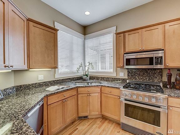 Beautiful Daylight Rambler Style Townhome w/ stunning Sound Views & peaceful west facing Sunsets. Lives like a rambler w/open great rm concept, 10 ft ceilings & south facing windows let you enjoy sunlight & the views. Kitchen w/ granite, high end s/s appliances & island. Gas fp, built-in cabinets w/wine cooler & view deck. Main floor master suite enjoys the views w/5 piecebath & designer walk-in closet. Lower w/3 beds, full bath, media rm, family rm w/ access to rear patio & yard. Welcome Home!