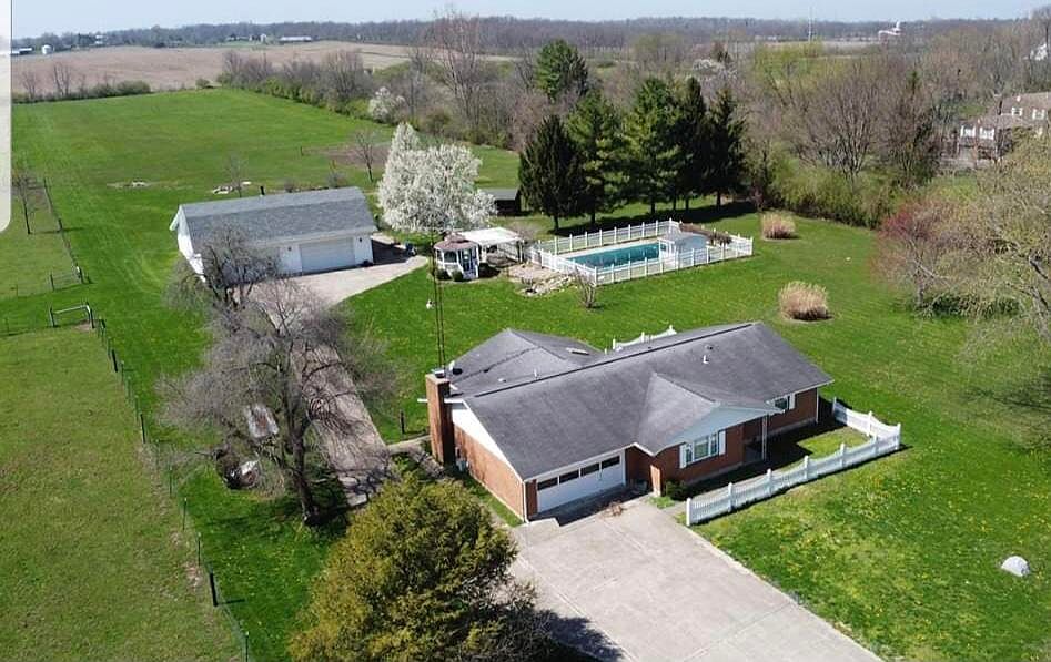 This is a unique ranch home on 7+ acres with an extra-large barn/garage/apartment and even an inground (800 sq ft) swimming pool. The pool has new liner and sand filter. Some of the features are 3 bedrooms, 2 full baths in the house, enclosed porch, 1 full bath and a loft apartment in the barn/garage. This is the ultimate MAN CAVE of nearly 3000 sq ft and extras for the ladies too! Fencing is vinyl for minimal maintenance. An underground storm shelter, a potting shed (SHE SHED), a gazebo, pergola, water hydrants on several locations in the backyard if you want a garden, animals or 4H projects. Inside the home there are many handicapped features including a new walk-in tub and shower. Three heating sources: wood burning stove, electric and a propane furnace that has A/C. You can't go wrong moving here! Too many features to list,it is a must-see! (Barn roof is only a couple years old.)
