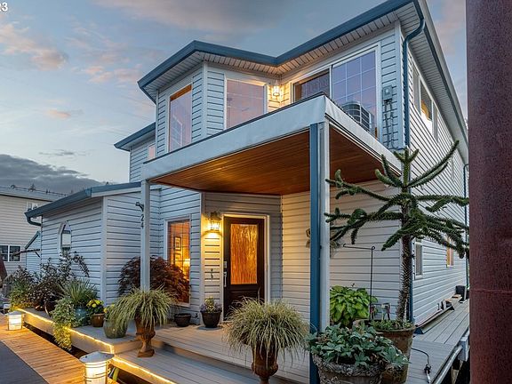 Ultimate waterfront living with slip ownership in a gated community nestled along the scenic Willamette River. 30 x 32 deck adorned with an awning and swim platform perfect for entertaining. Immerse yourself in paddle boarding or kayaking right from your front dock! On the main level you'll find the living room featuring a cozy gas fireplace, a versatile second bedroom or office space as well as a full bathroom. The second floor features a primary suite that overlooks the shoreline and offers breathtaking nature views through its expansive windows and sliding patio door. On this level you will also find a third bedroom and a convenient half bath, complete with a stackable washer and dryer. Ideally situated between the renowned Sellwood Bridge and the vibrant John's Landing neighborhood, this floating home offers the perfect balance of tranquility and convenience. Meticulously maintained and move-in ready, ensures a seamless transition into your new riverside lifestyle. Included with the property are two reserved parking spaces in a secured gated lot. Enjoy the ease of walking to the fabulous Zupan's market and a plethora of restaurants along Macadam Avenue. The moorage offers boat slips and garages on site that are available for rent through a waiting list.