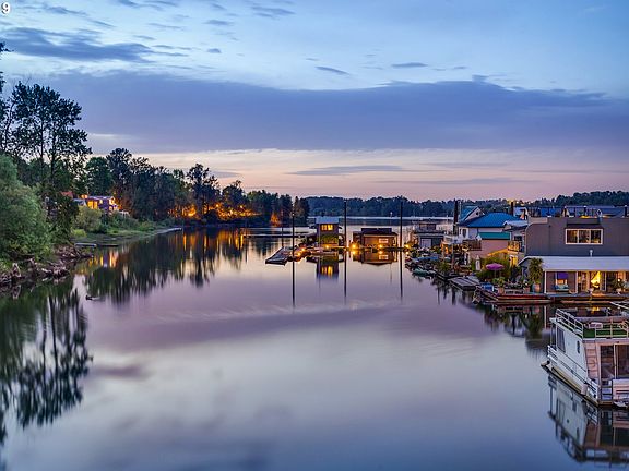 Historic 3-bdrm floating home on Willamette River w/ 360 degree water views. Fully updated structurally & aesthetically w/ unobstructed views & river access. Best location in gated Macadam Bay on west side of river south of downtown PDX. Secluded community where you live vacation lifestyle - sunsets, wildlife, kayaking, fishing from your decks. Private 2nd flr deck off master with views of City lights. Includes: home, slip, parking.