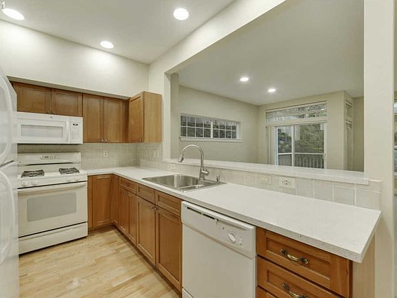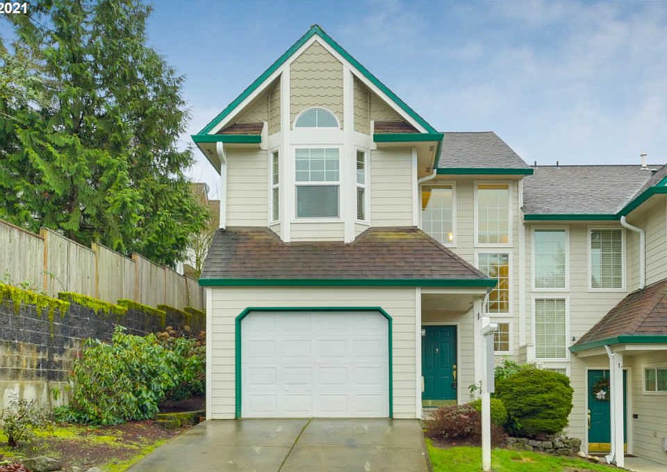 Well maintained end unit townhome features a main floor great for entertaining, kitchen with eat in bar, half bath, large living room with gas fireplace, high ceilings and sliding door to private deck. Upstairs features a master with high ceilings and en suite with walk in closet and full bathroom, a second bedroom with en suite bathroom and an upstairs laundry room with storage cabinets and counter for folding. Great location, close to Fanno Creek Trail, with easy access to Highway 217.