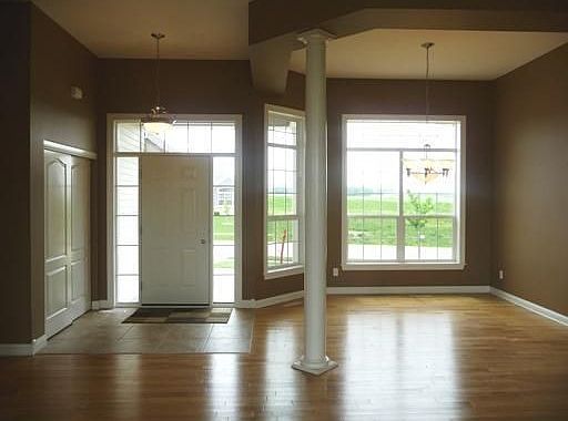 IMPRESSIVE BARRINGTON FLOOR PLAN OFFERING GAS FIREPLACE AND WOOD FLOORS IN GREAT ROOM ACCENTED WITH ATRIUM WINDOWS ON BACK WALL AND FORMAL DINING AREA. MAPLE CABINETS, CERAMIC FLOOR AND GRANITE BREAKFAST BAR SETS OFF THIS EXQUISITE, OPEN KITCHEN/NOOK AREA. SPLIT BEDROOMS FEATURE "JACK AND JILL" BATH AND MASTER BEDROOM SUITE FEATURES 2 WALKIN CLOSETS AND FULL BATH WITH WHIRLPOOL. WALKOUT LOWER LEVEL IS ENHANCED WITH SPACIOUS REC ROOM, BEDROOM AND BATH. 3 CAR GARAGE PLUS MANY AMENITIES. IN CLOSE PROXIMITY TO YMCA, AQUATIC CENTER, PARK WITH WALKING TRAIL AND SCHOOLS.