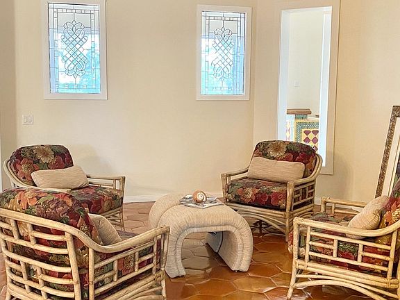 One of the most unique Windsor Models in RiverWalk! The floor plan has been expanded to offer not only a place to entertain with views of pool and lake but also adding an additional sitting area in the Master Suite.Stunning Mexican tile is through the main living areas, custom tiled counters and a magnificent kitchen bar opening to the spacious family room create a space that is perfect for entertaining. The large master bedroom encompasses generous closets and a master bathroom with walk in shower, double sinks and classic white subway tile with black accents. There is a second ''master suite'' with private bathroom and a French door leading to the third bedroom, perfect set up for a teen or extra house guest. The office/den has French doors and leads to the master bedroom so could
