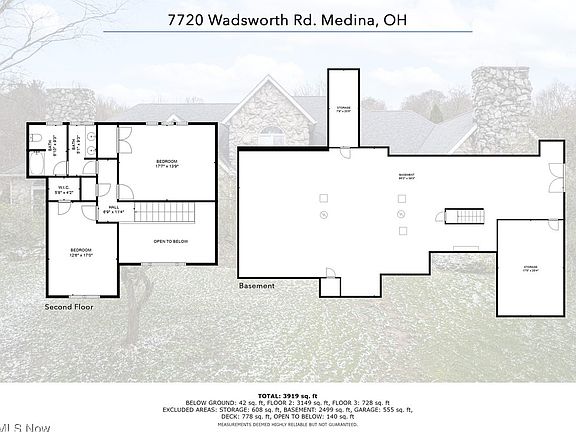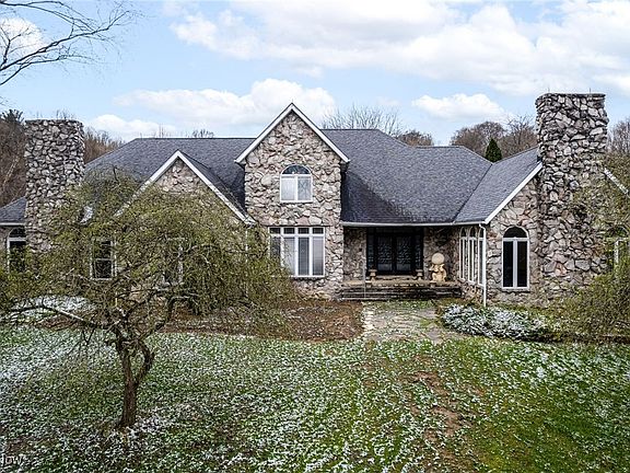 Welcome to your own piece of serenity at 7720 Wadsworth Road in beautiful Medina County. This 3-bedroom 3.5-bathroom home with 3 car garage and 4,200 square feet of living space is nestled on an amazing 13.5 acres of property that also offers a pond and a 4-stall horse barn with loft above. The very back part of this property is part of the Western Reserve Land Conservation which gives you peace of mind that nobody will build behind you and the great view and the nature that comes with it won't be disturbed. The 1st floor living area features an entrance foyer with with high ceiling and recessed lighting. and marble flooring. A large living room off to the right features large windows for ample natural lighting, a fireplace and marble flooring leading to a nice size family room with access to the back deck and marble flooring. The dining room features a big full window that allows you look out to the amazing back yard of the property. There is a good size eat in kitchen that features custom German Poggenpohl cabinetry and access to the back deck and driveway. The 1st floor also offers an office that could be used as a 4th bedroom next to that is a full-size bathroom and and a master bedroom with marble floors and walkout to the side yard with full bathroom with jetted tub and shower and a large walkin cedar closet and changing room. Off the kitchen is hallway that leads to a half bathroom laundry room and attached 3 car garage. The second floor offers 2 additional bedrooms and full bathroom. The huge basement is ready to be finished to your liking with walkout accessibility. This home was constructed using a beautiful Canadian pink mica stone that sparkles in the sunshine that was mined in northern Canada and shipped to build this home. New roof put on house in 2016. Home also comes with a 1 year premium home warranty. Come see this one of kind house and property and make it your own!!!