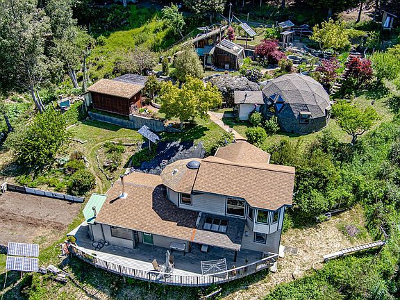 Prepare to be in awe! The love & care that was poured into the development of this extraordinary homestead has created a living space of abundant peace, relaxation, & self-sufficiency. Located in the remote & wild Whale Gulch area in Northern Mendocino County, yet right next to Whale Gulch School, this property offers 2 homes & a guest unit surrounded by the most impressive landscaping with rock walkways, built-in benches, fruit trees, berries & so many ornamental plants - it's like a private botanical garden! Main home is a 2-story 2,000 sf 2bed/1.5bath with locally sourced wood featured throughout, a large deck, sauna, & stunning mountain views. Second home is a beautiful Dome Home with easy flow, full bathroom & loft bedroom. Guest Studio has kitchen, loft bedroom, bathtub, living area Two creeks on the property, one on each side of the homes, providing water security & the ambiance of the sound of running water. Homes are provided water by a spring on the property, each home has it's own septic system, & there's solar & back-up generator plumbed to both houses. While the homes provide inviting and functional living spaces, the entire property exudes so much love, a must see!