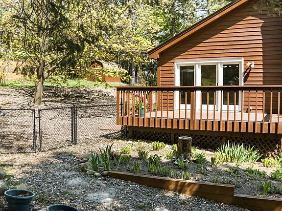 Move in and enjoy. Vaulted living room, main level walks out to deck, newer kitchen, large Master bedroom with walk-in closet. Lower level family room, bedroom and bath. Plus a bonus room (legal bedroom) has been used as Library/office. Very large landscaped yard with massive perennials and raspberries. Quiet, inviting property.