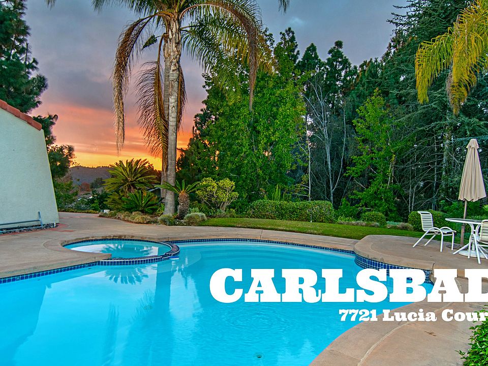 Charming single story, 3 bedroom/2 bathroom La Costa home on quiet cul-de-sac and 1/4 acre pie-shaped lot with private pool and spa. This home features new windows, fireplace, French doors and a private front courtyard. The master bedroom offers dual sinks, walk-in shower, walk-in closet and a door leading to the backyard. Great additional features including 2-car garage, large driveway, loft storage space and mature landscaping. In wonderful neighborhood and top-rated school district including La Costa Heights Elementary, Oak Crest Middle School and La Costa Canyon High School.