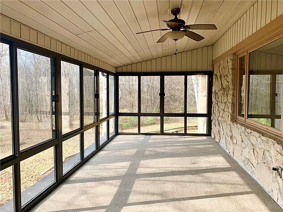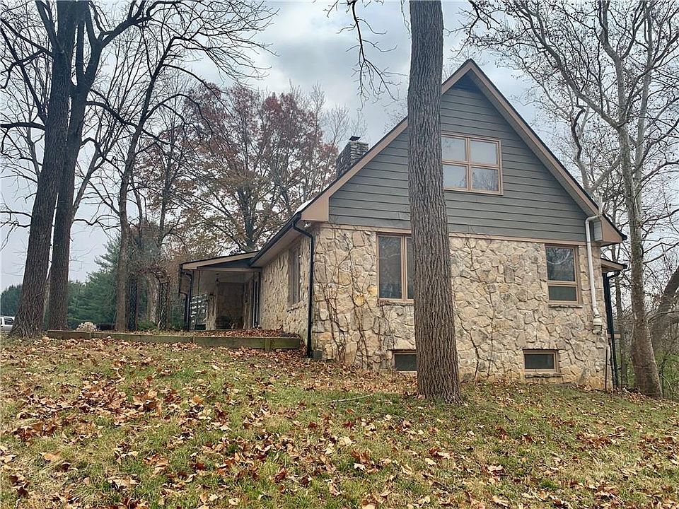 Unique multi-level stone home with 2300+ sq ft nestled on 5 acres with woods and creek. Enjoy the great outdoors on the screened porch, on the deck in the hot tub or taking a dip in the in-ground pool all surrounded by beautiful mature trees. Updated kitchen with quartz island and appliances included. Great for entertaining and family gatherings where your guests can cozy up to 2 fireplaces. Master suite on main, finished walk-out basement, loads of storage, laundry room, laundry shoot, detached 2-car garage and barn on property.