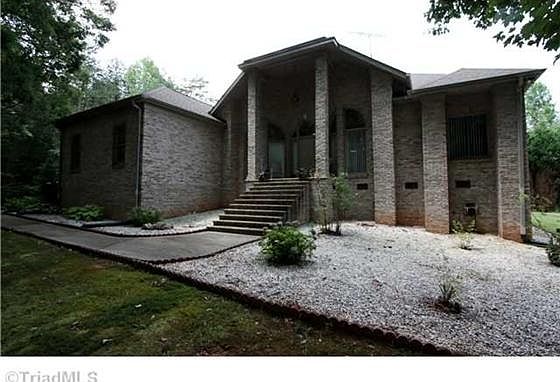 Beautiful brick home in a private setting. Feels like the mountains while convenient to Winston and Greensboro. Over 3 acres in NW Guilford Co. Warm hardwoods in living areas, carpet in bedrooms. Open floor plan with cathedral ceiling. Large deck looking over beautiful yard. "de hut" workshop remains.