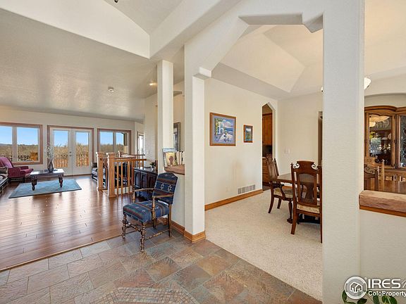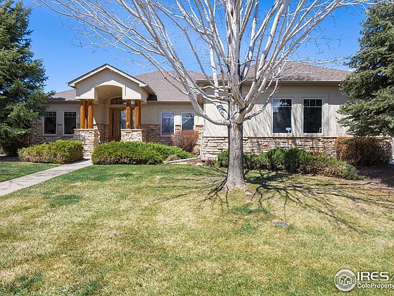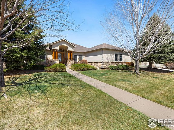 Ranch with walk-out basement with a panoramic view of Poudre River and the Rocky Mountains. Large kitchen with gathering room, built-ins, granite countertops and buttles pantry. 5-piece master bath with mountain views from jetted tub. Finished walk-out basement with 2 bedrooms, jack-n-jill bath, huge rec room and wet bar. Storage galore. Wonderful outdoor areas on each level. Easy to show. Move-In Condition.