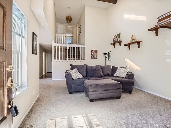 Put your personal touches on this 3 bed/3 bath townhome. This end unit (with skylights), provides exceptional natural light. Large, carpeted living room with vaulted ceilings. Kitchen with granite tile counters, newer sink, refrigerator, and dishwasher (all stainless steel). Free-standing microwave included. Good-sized dining area, adjacent to 10 x 10 enclosed patio for indoor/outdoor dining. Main floor laundry and powder bath. Wood laminate on main floor. Three bedrooms up, including primary suite, two secondary bedrooms and full bath. Lot of infrastructure updates: newer roof with Class IV shingles (2016), newer gutters and skylights (2016), newer electrical panel (2017), new patio slider and window well cover (2020), all other windows newer, including egress window in basement. New radon mitigation system in 2022. New 50-gal hot water heater (2023). Furnace cleaned, serviced and updated in 2022 (new gas switch, igniter, blower motor, capacitor, control board, transformer & pressure switch) - so essentially new. Unfinished 735 sf basement with rough-in plumbing. Two-car garage with newer opener and 4 x 8 storage area. Central air. Fireplace is not operational. Walking distance to the Highline Canal, Writer Ridge Park, the Mineral (light rail) Station and Aspen Grove Shopping Center. Reasonable HOA. Lots of amenities including: outdoor pool (w/toddler wading pool); tennis, piickle ball and basketball courts, playgrounds.