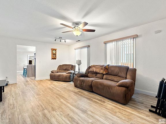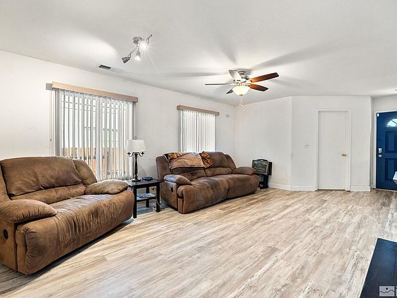 Lemmon Valley Gem! Located in a mature, family-friendly neighborhood just off Military Road, this beautifully updated 4-bedroom, 2-bathroom home is less than 10 minutes from local elementary, middle, and high schools—making it perfect for growing families. With new interior paint in the living room, dinning room, kitchen and bathrooms, this home is truly move in ready! Step inside to a spacious and welcoming formal living room, where the front bedroom doubles as an ideal home office. The remodeled kitchen features a stunning waterfall island, stylish two-tone cabinetry, and ample storage—perfect for entertaining or everyday living. The open-concept layout flows seamlessly into the dining and living areas. The generous primary suite includes a full bath and expansive walk-in closet. Two additional large bedrooms share a second full bathroom. Every room is outfitted with ceiling fans or lights. Step outside to enjoy breathtaking mountain views from the backyard—ideal for outdoor gatherings. A storage shed provides room for tools and extra belongings, and both front and back storm doors offer added comfort and security. Seller has identified her new home, and is motivated to get this sold and move onto the next chapter.