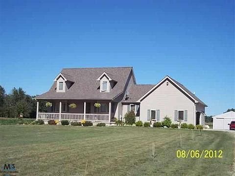 Nice 2005 Built Cape Cod on over 2 ACRES. 32' x 24' Pole Parn with Cement Floor and Electricity. Chicken Coop and a ton of newly planted trees. First Floor Master Suite with Walk-In Closet. Huge Great Room with Natural Fireplace that heats the whole house. Finished Basement, First Floor Laundry and Mud Room. Brand New Roof! Huge Deck Overlooks the Treeline. Home sits WAY off the road and is very private. Less than 5 Minutes to Downtown Armada.