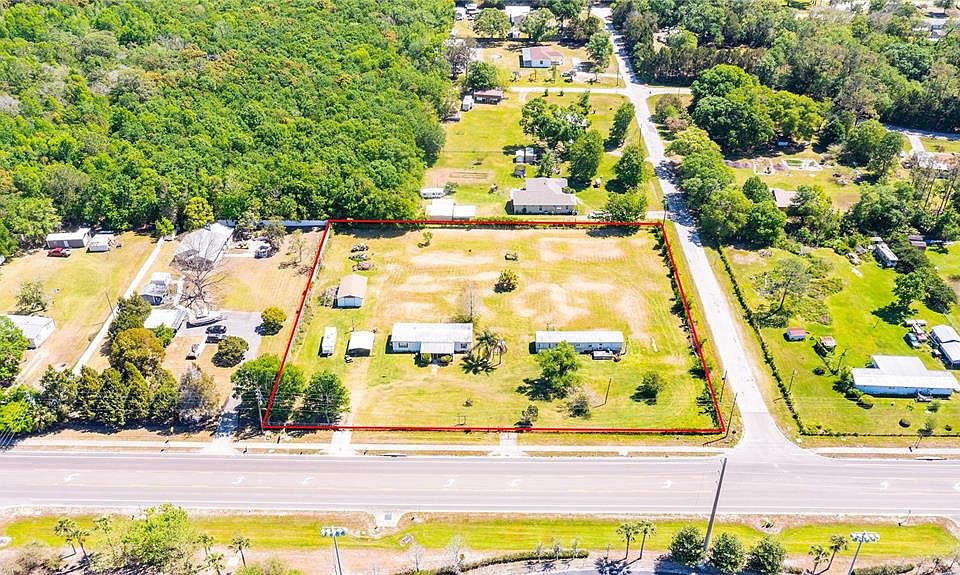 Location Location Location!! Don’t sleep on this prime, just over 2 acres, completely fenced, corner lot in the ever-expanding Wesley Chapel area. Property is located directly across from the Wesley Chapel Recreation Sports complex. Property has a double-wide mobile home and a single-wide mobile home, each with their own septic tank and power pole. Mobile homes need rehab. 20X18 metal carport and a large 30X20 shop with power built on a concrete slab. Incredible location close to schools, shopping, restaurants, the Sports Complex, and a quick drive to I-75 and Over Pass Rd.