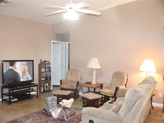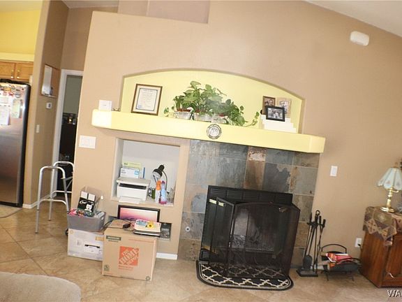 ATTENTION GOLF ENTHUSIASTS!! Located just one street over from the 9th Fairway and just a block away from the Valle Vista Golf ClubHouse, you will love this opportunity to own a fabulous home in this Golf Community. Surrounded by our Mountain Scapes and about 20 minutes North of Kingman you will enjoy the solitude along with the convenience of the Community Swimming Pool, Clubhouse restaurant and bar. In 2022 all of the flooring was replaced with 18' Ceramic Tile in the main living area and Vinyl Tile in the bedrooms. The Primary Suite is spacious with enough room for a sitting area and sliders out to the back patio. Cozy up with the woodburning fire place in the cooler months with your favorite things on the built in pot shelves. While doing dishes in the spacious kitchen, watch the golfers on the 9th fairway, from the kitchen window. Moving things outside, enjoy the horseshoe pit in the private backyard. Double RV gates, one on each side of the home make room for all of your RV's and toys. The man of the house will love the clean garage with built in cabinets. This charming 3bed/2bath home offers a perfect blend of comfort and convenience, so come check it out.