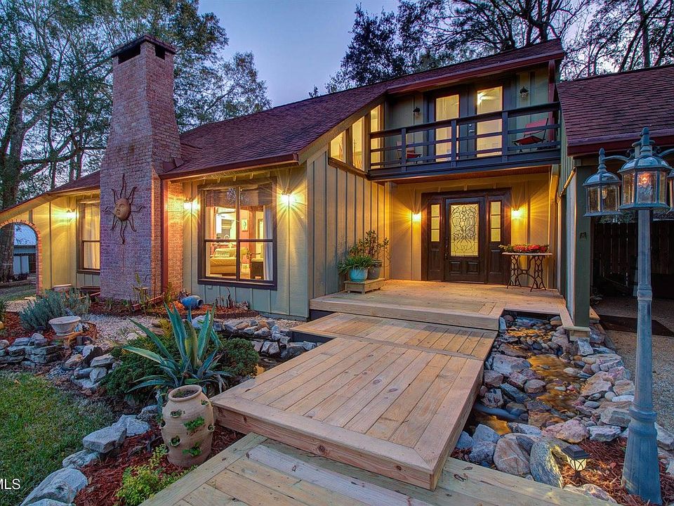 Wow! This home is truly one-of-a-kind. Two storeys of meticulously cared for and lovingly curated details that will surprise you at every turn. Located in a beautiful and private cul-de-sac on an oversized lot. You will be greeted each day by unique, custom landscape features that include a sprinkler system, lion fountain on a giant stone paver patio, wraparound decking and a private courtyard with an impressive garden and amazing water features. The front door is inset with stained glass and inside there are vaulted ceilings, lots of natural light, a floor-to-ceiling library and fireplace. Two master suites with new carpet, balcony views, jacuzzi tub and separate shower with elegant tile design. The detached cottage is perfect for office or art studio or quiet retreat. Will not last long!
