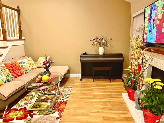Rarely available end unit townhouse in guard gated community. Garage with 2 car parking and storage. Washer, Dryer, Refrigerator, Fireplace, Reverse osmosis drinking water. Master with travertine tile shower. Pool and spa are steps away. Across the street from Rodeo 39 food court. Close to Supermarkets, Costco, Little Saigon, Huntington Beach, 22 & 405. Community is a quiet charming oasis that is friendly and convenient. Owner pays HOA. Renter to assume all utilities: electrical, internet, trash, etc.