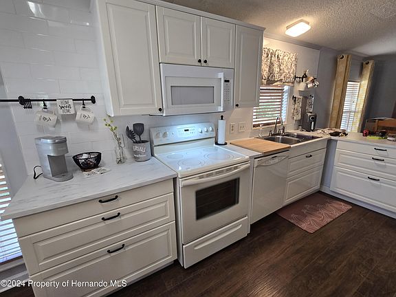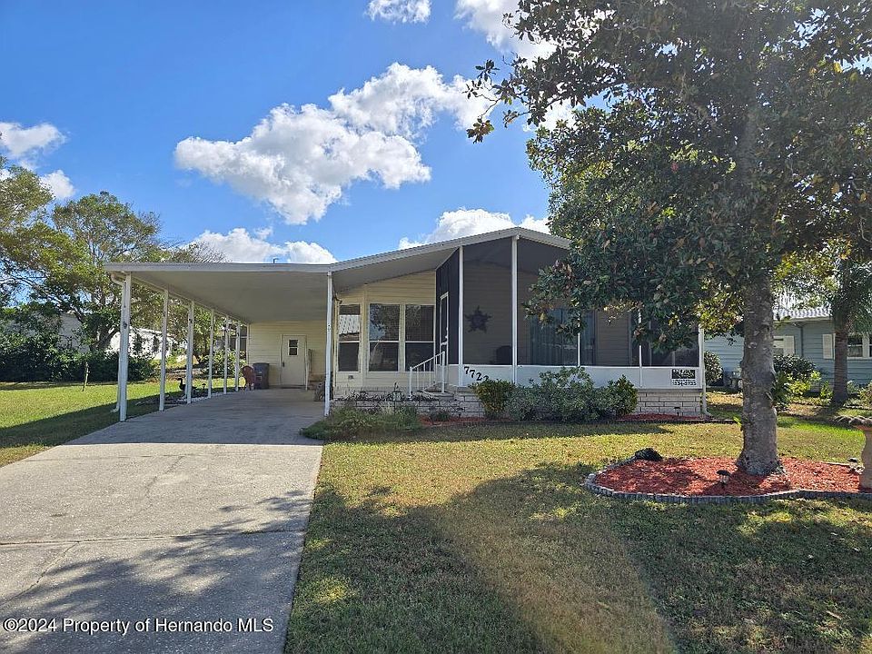 The Best Florida Living is in the Brookridge 55+ community where you own your home and land! This home shows like a model. This home is modern, and is well-appointed with neutral paint colors, decor and furnishings making it completely move-in ready! The best part is.... the beautiful furniture and decor you see when you visit the home will stay with the sale of property! This Palm Harbor home is a 2 Bedroom 2 Full Bathroom with Vaulted Ceilings. The kitchen has all newer cabinets in white with spacious pull-out drawers. The living square footage at 1248 sq. ft. gives you ample room and really good-sized bedrooms, closets and storage areas. The entry way has a mud room. Laminate floors in the kitchen, living room and hallways, and brand-new neutral color carpeting in the bedrooms. Large front screened in porch with a view of a vacant lot and the Golf course right across the street! This home is about a 1/2 mile from the main community gate and club house and is on quiet street. Home had a re-roof in 9-2022. Overall, this place has been well maintained and cared for. Come see this one before its gone! Brookridge is a 55+ Active Community, but not your typical Manufactured Home Community since you Own your Own Land! Plus, the Homeowners Association cost is kept at a consistently low level and is only $50.00 a month! The Brookridge Community is Gated 24/7 and is brimming with activity boasting a 72-par Championship Golf Course & Pro Shop, Heated Swimming Pool, Tennis/Pickleball and Shuffleboard Courts, Horseshoes, Bocci Ball Court, Club House, Bingo, Crafts, Shows, and many social Groups! There is a real sense of community where you will meet new friends, there is really something for everyone. Brookridge has a great location and is close to shopping, restaurants, and medical facilities. Located close to State Rd. 50/Cortez Blvd. giving you easy access to Orlando. In addition, you are less than a mile from the Suncoast Parkway, your gateway to Tampa, Clearwater, or St. Petersburg leading you to, Airports, Sporting Venues, Cultural Arts, and world-famous Beaches. Our Local Beach, Pine Island is only 13 miles away where you can watch the Sunset and fish at the piers. The Nature Coast is one of the best places in Florida to live.