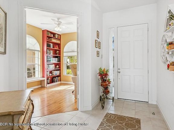Mirrored Entertainment Center, Tile Dining Area, with a Decorator Chandelier, that combined have 18 Feet of Sliding Glass Doors that Lead to 22 Foot Covered Lanai, with Panoramic Views of the Serene Azure Lake & the Swimming Pool! There is an additional Set of Sliding Glass Doors in the Dining Area that lead to a Secluded Patio with Lush Landscaping & would be perfect for Grilling! All 3 Sets of Sliding Glass Doors have Custom Day & Night Sliding Vertical Blinds & Stunning Fabric Valances & the Den/Office with a Faux Wood Laminate Floor, two Clerestory Windows with Custom Blinds & Built-in Bookcases which opens to the Foyer as well as to the Tile Kitchen! The Hub of Casual Entertaining & Everyday Living Kitchen that has Custom Bullnosed Granite Counter Tops with an Under the Counter Stainless Steel Double Sink & all of the Appliances including a Newer 4 Door French Door Samsung Refrigerator, (Needs Repair) & a Bosch Dishwasher! The Master Suite is Private, Secluded & has a Random Width Faux Wood Laminate Floor, Sliding Glass Doors to the Pool Terrace, a Dressing Area with 4 Closets including One Walk-in & 2 Double Width Closets, all with Built-in Shelves & a Linen Closet plus the Ultimate Luxury, 2 Baths, one with a Soaking Tub & a Custom Framed Mirror, the other with an Extra Large Stall Shower & a Custom Framed Mirror! The Bedroom Wing has 2 Large Bedrooms with Faux Wood Laminate Floor & one with a Custom Built-in Bookcase, a Full Bath with a Built-in Tub & Shower with a Glass Shower Enclosure & a Custom Framed Mirror & a Utility Room/Butler's Pantry that has a Laundry Sink, Lots more Cabinets & a Full Size Newer Maytag Washer & a Full Size Dryer that leads to the 2 Car Garage with a Custom DiVosta Built-in Storage Cabinet! There is a Newer Trane 15 Seer HVAC! There are Custom Accordion Hurricane Shutters on all the Sliding Glass Doors on Panels for the Rest of the Windows! There is a Central Vacuum System, a Security System, 5 Ceiling Fans! The Home is also available as a "Turnkey Purchase" with Furniture & Most of the accessories in Furniture Package! Call the Listing Agent for Details! The 600 Acre Community is Incomparable having 200 Acres of Lakes, 12 miles of Pedestrian Walkways with Cobblestone Bridges, Park Benches & Street lamps! There is a Welcoming Pedestrian Walkway at the end of the Cul de Sac to walk to the Town Center! There is a Roving Security Patrol, an Exclusive 24 Cable Channel to find out what is going on & there is a lot! The Town Center, the Heart & Soul of the Community has All The Amenities including 3 Heated Swimming Pools (1 Lap Pool, 1 Adult & 1 Resort), 8 Har-Tru Lighted Tennis Courts with an on site USPTA Pro on Staff & a Pro Shop, a Fitness Center, a Bocce Court, Tot Lot, a Post Office, Plus "Centanni Cafe", a Genuine Italian Restaurant in the Town Center, run by a Chef with over 22 years' Experience in Italian Cuisine with Outdoor & Indoor Dining overlooking 3 Lakes for your Dining Pleasure serving Lunch, Dinner & there will be Special Parties on Holidays too! There are also Takeout Services! These Service & Amenities are included in the HOA! Plus, the grounds of the property, front & back are taken care by the HOA Fee plus the Power Washing of the Roof & so is the Newly Upgraded X-finity Platform Comcast Cable & Internet Service! It is like Living in a 5 Star Resort, 365 days a year! Having a Solar Heated Swimming Pool, a Fabulous Lush Lakeside Lot & being Beautifully Maintained, As Well; this Oakmont is Available for Immediate Occupancy & is A Golden Opportunity!