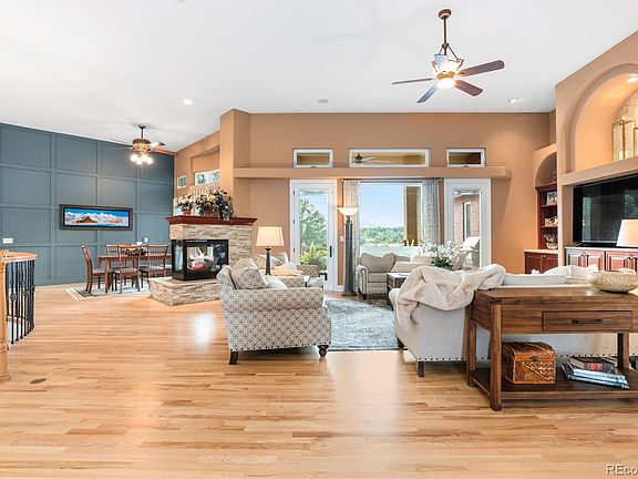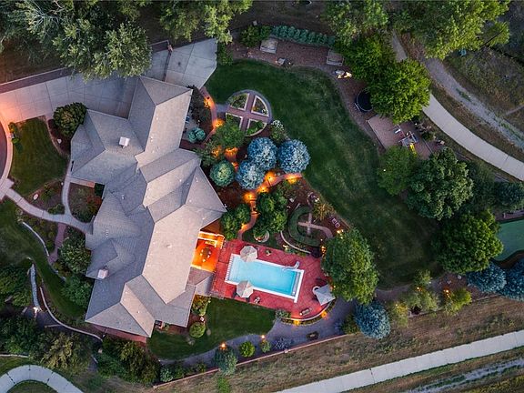 Welcome to your private paradise, offering breathtaking mountain views on a secluded, nearly 1.2-acre lot at the end of a cul-de-sac in the heart of Arvada. This exquisite custom ranch home with a walk-out basement spans over 8,000 square feet of luxurious living space. The main level features an expansive chef’s kitchen, fully equipped with top-of-the-line appliances, a new refrigerator, a walk-in pantry, & double ovens. Thoughtfully designed for cooking and entertaining, this kitchen opens into a family room adorned with elegant stone fireplaces. Adjacent to the kitchen is a dining room and additional eating area, all bathed in natural light from large windows and doors overlooking the backyard. This home includes 6 spacious bedrooms and 7 beautifully appointed bathrooms. The primary suite is a serene retreat, offering stunning views, a custom-built closet, and an updated ensuite with a freestanding tub, heated floors, and designer finishes. The additional bedrooms are generously sized, most with private ensuites and built-in closets, providing comfort and privacy. A private library featuring one of the home’s four fireplaces offers a cozy retreat for reading or relaxation. The lower level is designed for entertainment, featuring a theater, a wet bar, a game room, two additional bedrooms, and a steam shower. This space opens to a dream backyard, complete with a saltwater pool, gas fire pit, and an outdoor kitchen fully equipped with a pizza oven, Traeger built-in smoker grill, beverage refrigerator, cooktop burners, and a raised vegetable and flower garden. The outdoor amenities include a horseshoe pit, trampoline, putting green, & two fountains, all perfectly set for enjoying sunny Colorado days. This home is rich in sophisticated details, including custom-built hardwood cherry cabinets and shelves throughout. The oversized 4-car garage provides abundant space for vehicles, storage, & a workshop, ensuring every need is met with style and practicality, 4 furnaces