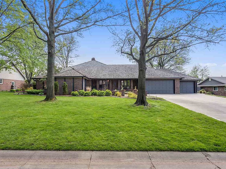 Magnificent custom ALL brick sprawling Ranch tucked away on a .41-acre treed lot in the heart of NE Wichita with phenomenal architecture throughout & the most exceptional courtyard!!! 4 bedroom, 3 full bath, 3 half bath/powder rooms and a 3 car garage. The massive brick courtyard of this residence is mesmerizing. In-ground heated saltwater pool and hot tub, huge cabana with covered outdoor kitchen and seating/TV area, plus a pool house with bathroom! The cabana even extends over a section of the pool providing excellent shade for summer swims. Entertaining has never been better! Outdoor living areas are expansive and extremely private! Mature trees, landscaping and sprinkler system. This custom built home has features and unique designs rarely seen in Wichita! Over 4000 sq ft of main floor living area. Impressive entry and foyer with leaded glass front door, sealed brick floors, inlaid wood flooring and a gigantic living room with the most amazing combination of inlaid brick, wood and brass flooring. It's just breathtaking inside and out. Beautiful woodwork throughout with tall beamed ceilings, wood accent ceiling in hall, walls of windows, plantation shutters, solid wood doors & crown molding. The gorgeous kitchen is light and bright featuring white cabinets, extra thick marble counter tops, a commercial Gaggenau cooking system with four burners. (deep fryer, steamer, wok high heat and gas burner), two stainless steel Gaggenau convection double ovens, two sinks, two dishwashers and the central statement piece - a spectacular solid iron chandelier over the island! Kitchen also includes a separate room that could be used as a walk-in pantry or even a future wine room, additional wall of pantry cabinetry and there is a 1/2 bath powder room nearby. The 28 x 22 living room has floor to ceiling walls of windows overlooking the magnificent courtyard, beautiful beamed tall ceiling, cozy brick fireplace with surrounding built-in cabinets, a back-lit wet bar area and French doors leading to the patio! All bedrooms can be found at the east wing of this lovely estate along with another powder room, three bedrooms and a master suite to enjoy. The master suite includes a cozy room for TV watching with sound proofing fabric lined walls and built-ins. Master bedroom has bay window and another wall of windows with lovely view of the private treed and fenced backyard. You will also find a happy sun room that connects you from the master to the courtyard and pool area. Master bath has separate shower and tub, tall vanities and so many options for storing your valuables, clothes, shoes etc. Three closets to choose from and a plethora of built-in dressers. His and her closets and an additional cedar closet as well. Partially finished basement has a large family room, rustic old world solid iron door (looks like it came from a European castle) and large laundry room with wash sink and storage. Retreat to the courtyard and backyard to relax and enjoy your beautiful home! Call today for a showing!! This one WILL NOT LAST!