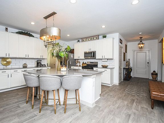 This nearly new home offers custom touches you won’t find from the builder, including landscape lighting, a water softener, full sprinkler system, tankless water heater, security system with doorbell camera, SMART home features, trendy lighting fixtures, and an oversized covered patio.