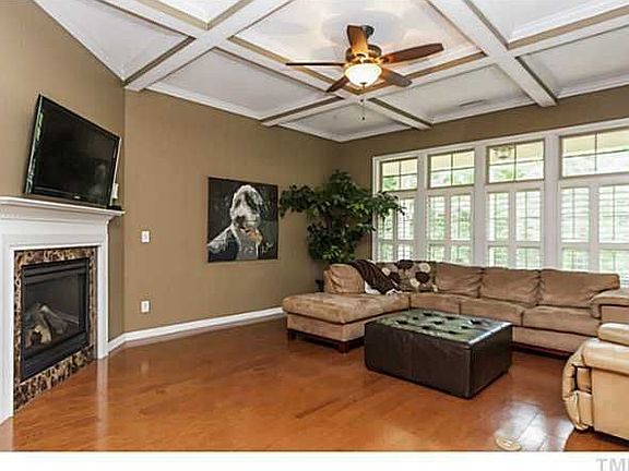 Stylish upgraded North Raleigh home centrally located w/great amenities. Open floor plan w/hardwoods plus plantation shutters, specialty lighting & fans. Gourmet kitchen w/granite, gas stove & stainless. Great room w/coffered ceiling & fireplace. 1st floor master suite w/retreat, his/hers closets, garden tub, large shower & double vanities. Walk-in attic. Private patio w/fans.