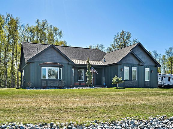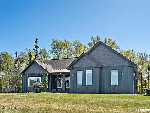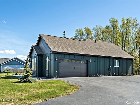 CREEK FRONTAGE AND MIL APARTMENT!! This beautifully crafted ranch style home offers 3 spacious bedrooms, 2.5 bathrooms, a 3 car garage, and an additional detached apartment/MIL with a full kitchen, bathroom/laundry area, and loft. As you step inside, you are greeted by an inviting open living room with LVP floors and tile, a see-through fireplace, and a separate sitting area that seamlessly flowsinto the large kitchen with granite countertops, copper sinks and accents, newer appliances, and a separate dining area perfect for hosting family dinners. The master bedroom boasts tray ceilings, large windows, and an en-suite bathroom with a jetted tub, separate tiled shower, and a spacious walk-in closet. The second and third bedrooms are equally spacious, with lush carpeting, large closets, and plenty of natural light. The detached apartment or MIL is a hidden gem, featuring French doors that open to a living area with built-in nooks, a full galley kitchen, bathroom/laundry area, and a loft with a deck for enjoying your morning coffee. This versatile space could be used for guests, a mother-in-law suite, or as a rental unit with its own private entrance and parking. Outside, the home boasts a large deck for outdoor entertaining, a fenced backyard, and beautiful landscaping with mature trees and the Wasilla Creek running through the back yard! Imagine watching the salmon swimming in this creek! Located in a desirable Palmer neighborhood, this home is just minutes from shopping, dining, outdoor recreation, minutes from the hospital, and an easy commute to Anchorage and the military base. Don't miss out on the opportunity to own this stunning home in a great location. Contact us today to schedule a showing.