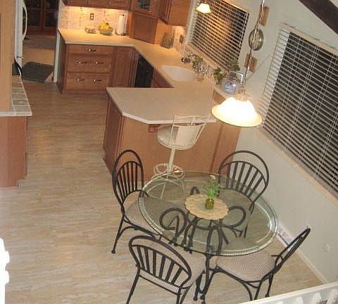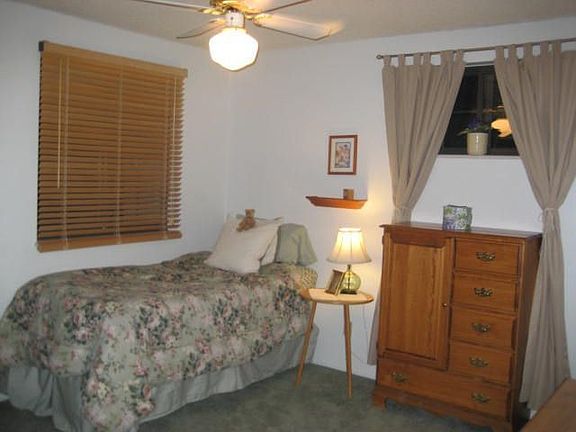 Large lot with lovely perennial gardens on all sides, wide flagstone-covered entry, light tan tri-level with brick trim, partial unfinished basement, 3 bedrooms up, 1 down, open layout but variety with different levels, new window treatments/ceiling fans throughout Neighborhood Description This neighborhood is about 30 years old, with lots of mature landscaping. Yards and homes are well-maintained here, as people here take pride in their homes! We are close to a couple of major roads, which gives access to I-25, Light Rail,E-470 and Park Meadows Shopping Mall and every other store is within a mile. Walking trails start 1/2 block away.