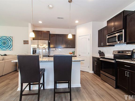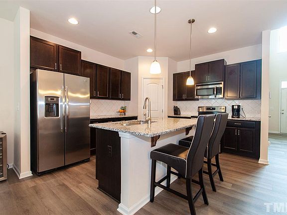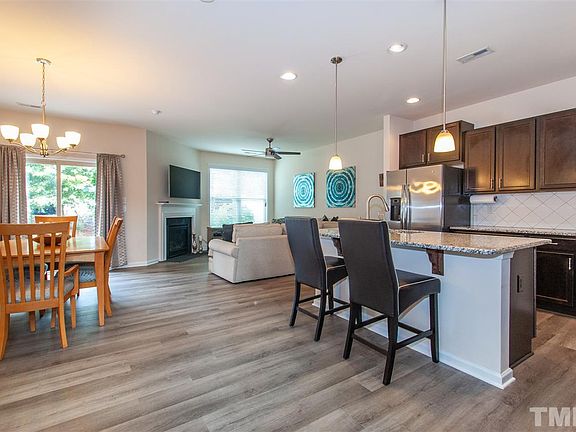 Updated 3 bedroom townhome shows like a model! New luxury floors on main level. Open floor plan offers 9' ceilings. Fabulous kitchen has granite counters, island/bar, tile back splash & SS appliances. Living room w/gas log fireplace, dining area w/access to private patio. Spacious master bedroom boasts a glamour bath w/dual vanity, garden tub/separate shower & WIC. 2 story foyer w/open staircase. 1-car garage. Enjoy the community pool & playgrounds. Convenient to I-540, Buffaloe Rd Park & Aquatic Center.