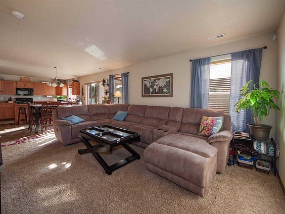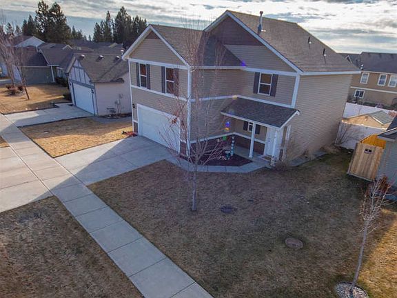 This warm, inviting 3 bed, 2.5 bath home is cozy and turn-key ready! The large, level back yard is prepped and ready for enjoying the warm weather ahead--fully fenced with both a patio and fire pit area, plus an extra storage shed! The main floor features an open plan, with the kitchen, dining, and living rooms all connected, and upstairs there is an additional living space and two full bathrooms. The primary bedroom has a walk in closet and attached bath with double sinks and walk in shower. Located on Five Mile Prairie in the Mead School District with quick access to arterials for commuting.