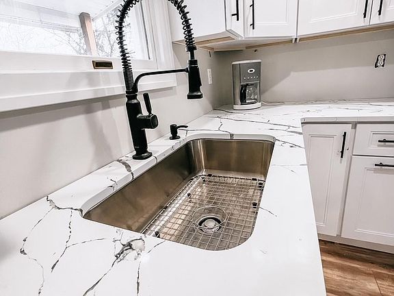 Don't miss out on this beautifully updated home located just a short walk to Koontz Lake.  Fully fenced yard, 2 car detached garage, open concept, 2 bed, 1.5 bath, partial basement, new flooring throughout, fresh paint, includes all appliances.  Contact me for more details and to set up your showing today!  Home is being sold "As Is"