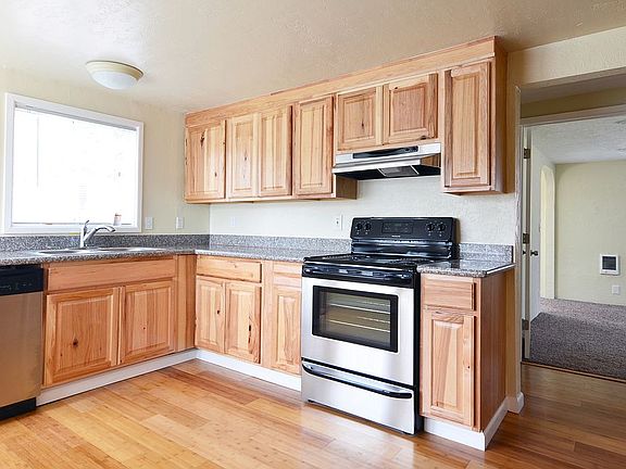 Completely Remodeled three bedroom two bath home in a great Milwaukie neighborhood! This beautiful home has just been remodeled with new granite counter tops, hickory cabinets, bamboo flooring and stainless steel appliances. New tiled floor and tub enclosure in master bath. Master bedroom has walk in closet with skylight and sitting area. Corner lot with huge fenced backyard. Your new home awaits!
