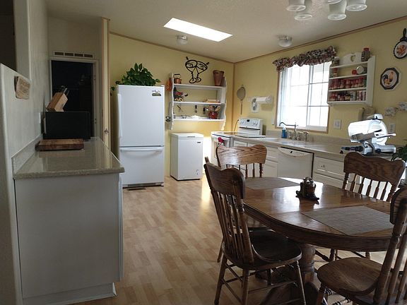 Must Love Country! 3 Bedroom, 2 Bath Manufactured Home & detached oversized garage on 40 acres near OR/CA border. This well maintained 1994 Skyline MH has some nice updates and a few custom features with scenic mountain & valley views. The home features; new roof in April 2023, appx 1248 sf, split floor plan, Corian counter tops, walk-in shower, vaulted ceilings, skylights, vinyl windows with lots of natural light, F/A electric heat plus a cozy woodstove and covered front & back porches. Outside you’ll find a large 2 car detached garage with extra room for storage or workshop. Other great notables; corral, shed, covered tack/hay area & woodshed. Manicured front & back lawns, huge gravel driveway with extra parking for vehicles and trailers, fenced garden area and more. Make your appointment today. AS-IS WHERE-IS. 15 miles to Dorris or Macdoel, 36 miles to K Falls city center.