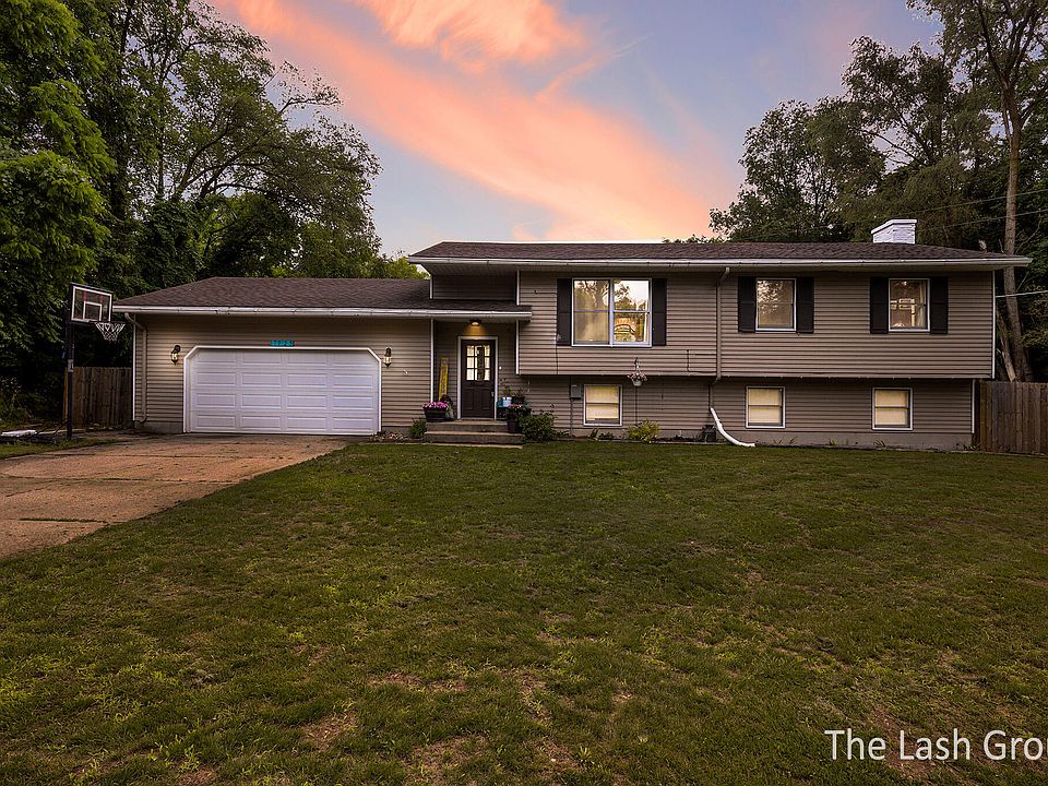Come check this house out! It is located close to shopping, and M-57. The walk-out lower level leads to the fully fenced backyard with a play area, and tons of space for gardens! This house has 5 bedrooms and 2 full baths. There is an attached two-stall garage for convenience. New furnace and AC unit this year!